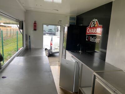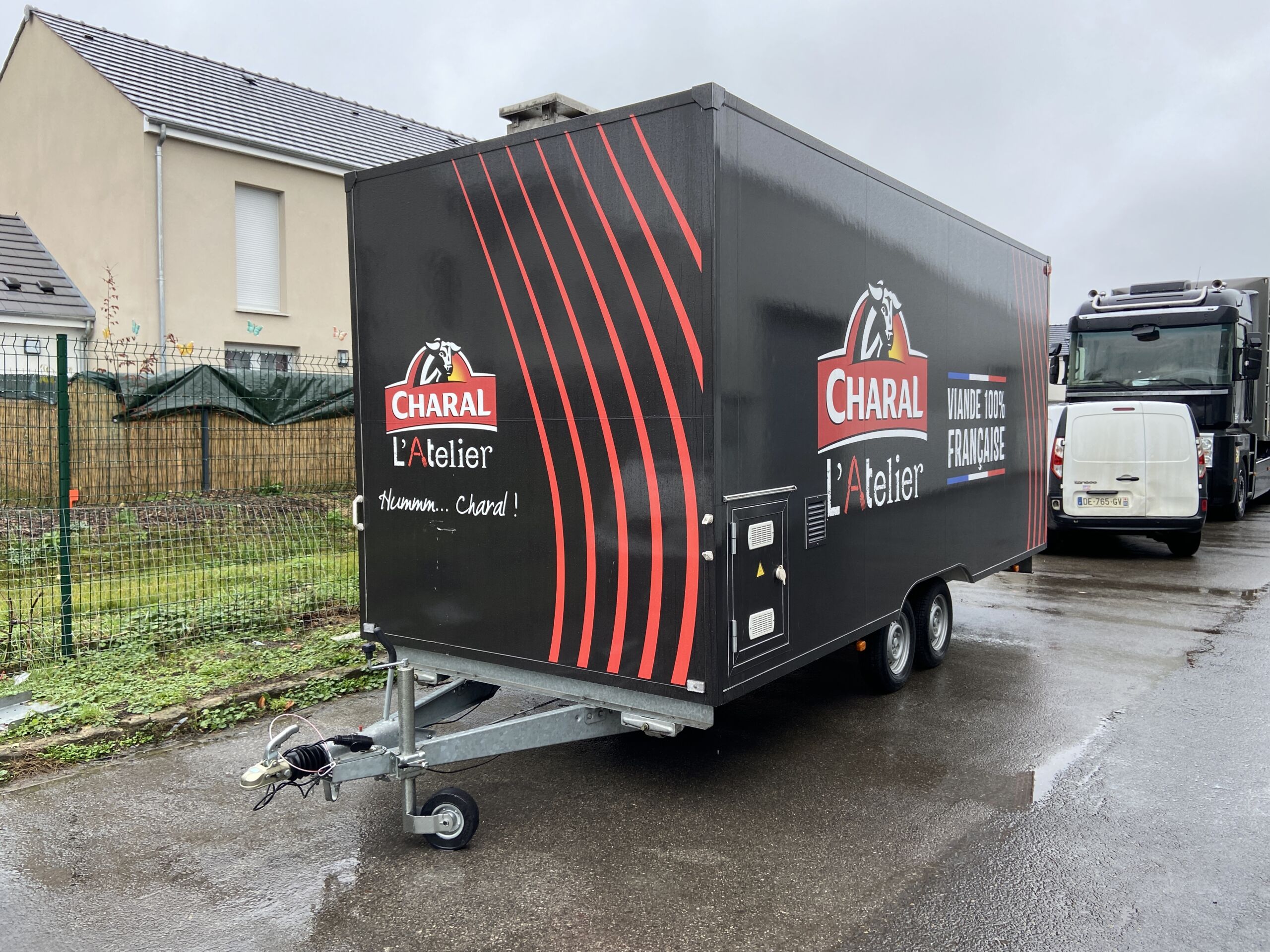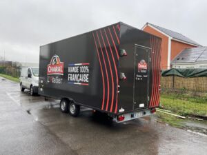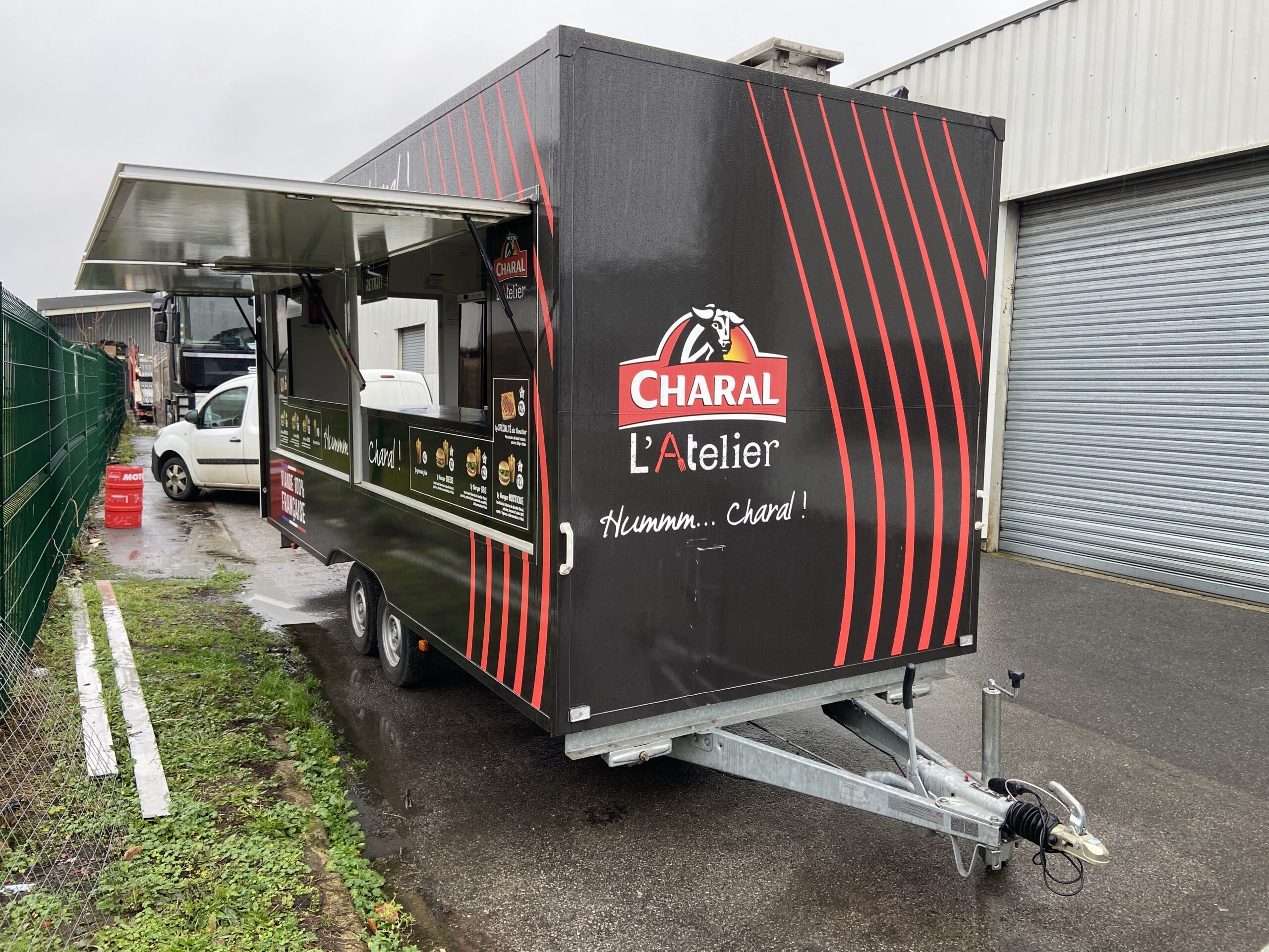 Blanche d’origine, mais covering Charal inclus pour une identité visuelle professionnelle et reconnaissable.