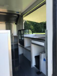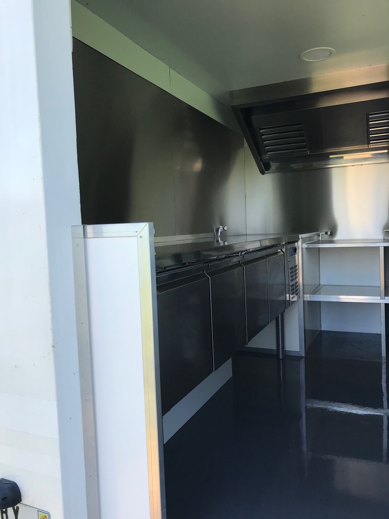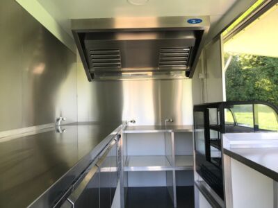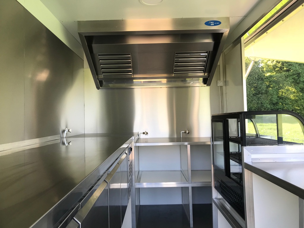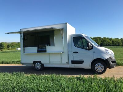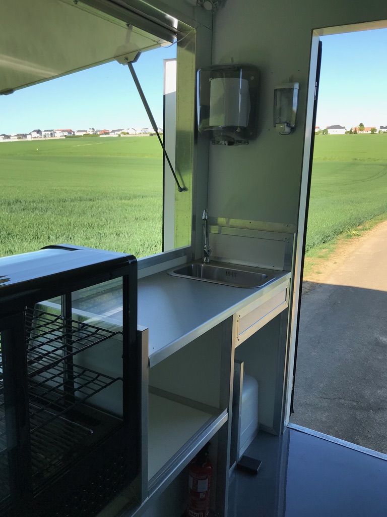 Food Truck aménagé à neuf sur base Renault Master L2H1 occasion - 1ère MEC : 2019 - 170 000 km environ -Véhicule révisé et garanti 3 mois ou 5000 km MBP, aménagements et équipements neufs et garantis un an pièces et expédition. Carte grise VASP Magasin. Rapports de contrôle des installations gaz et électrique fournis. Aménagements : auvent latéral côté passager sur vérins gaz avec tablette bar, installation électrique 220 V 32 A (non autonome), installation gaz propane (bouteilles de 13 kg) avec logement verrouillable côté fermé. Équipements (non visibles sur les photos) : 1 plancha 2 zones gaz, 1 friteuse 2 paniers gaz, 1 hotte, 1 soubassement réfrigéré 4 portes, 1 vitrine réfrigérée 100 litres, 1 lave-mains (eau froide). Tarif: 33 990 € HT (40 788 € TTC)